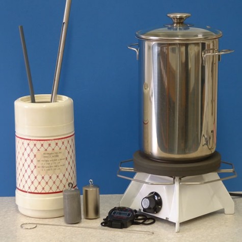 Wieviel Wärme ein fester Körper aufnehmen kann, ist durch die spezifische Wärmekapazität festgelegt und stellt somit eine Materialkonstante dar, ist also nicht bei jedem Material gleich. In diesem Versuch sollen die spezifischen Wärmekapazitäten verschiedener fester Stoffe bestimmt werden. Dazu werden die Materialien erhitzt und dann in ein Wasserbad gegeben, an das sie ihre Wärme abgeben. Die Stichworte “Wärmekapazität” und “Kalorimetrie” sollte man sich vorab anschauen und klar machen. Des weiteren ist die Versuchsanleitung (opens in new tab) sowie das Merkblatt zur Kalorimetrie (opens in new tab) vor dem Versuch durchzuarbeiten. Außerdem benötigen Sie hier Millimeterpapier.